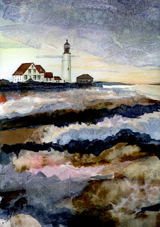 I'm probably wrong, but I could swear that Montauk daisies did not exist when I was a child. I first remember hearing about them when I was a young woman. Because I live on Long Island in NYS I am very familiar with the town of Montauk where they originated. The first time I can remember seeing these flowers in person I was in Montauk itself and I took several photos of them. The idea of seeing Montauk daisies in Montauk gave me quite a tickle. Doesn't take much to amuse me! Years later I made this painting from my photos.